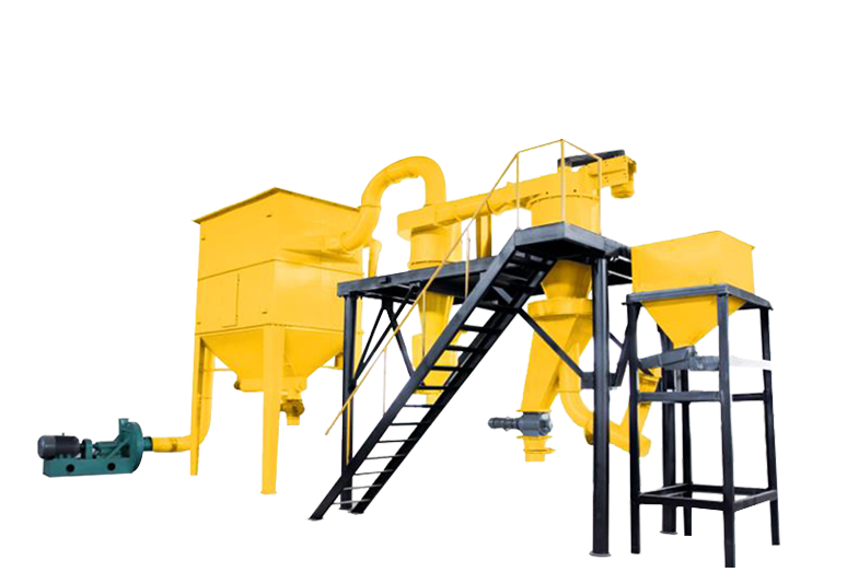 整套分级装置由气流分级机、旋风网络器、脉冲除尘器、高压引风机、电控柜等组成。。。。。。气流分级机是带有二次进风及立式装置的大叶轮转子的强制型分级机。。。。。。